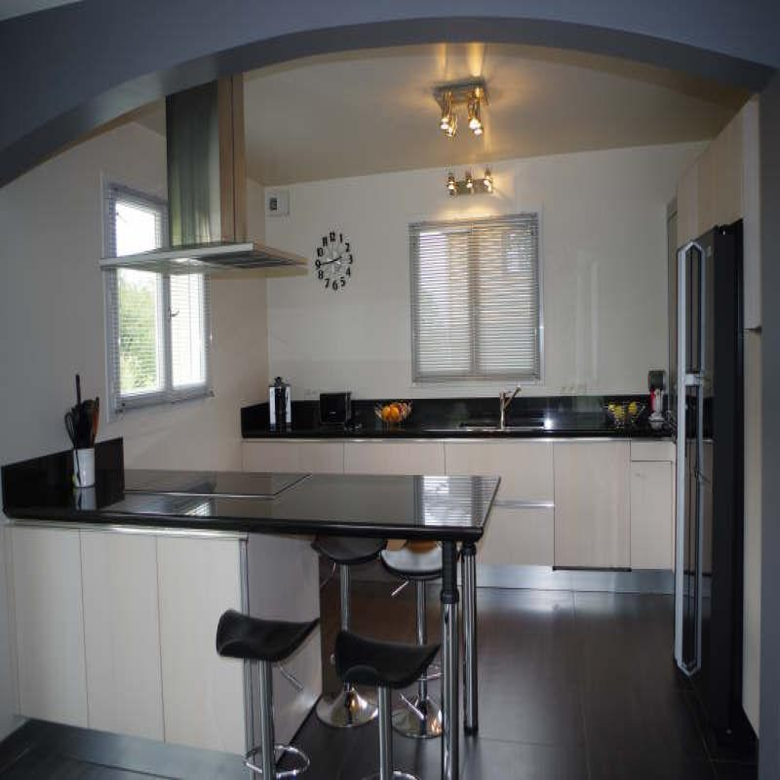 Composée de cinq chambres, trois salles de bains, un spacieux salon séjour avec cuisine ouverte.