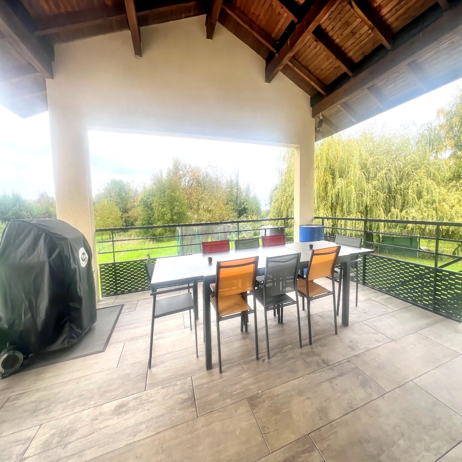 Home & Patrimoine vous présente en exclusivité, cette belle maison récente de 165 m², édifiée sur 3 500 m² de terrain, au coeur d'un environnement calme et verdoyant. Composée d'un sous sol complet avec caves, salle de sport, buanderie-chaufferie et garages. le rez de chaussée propose un espace de vie généreux, baigné de lumière, une cuisine aménagée et équipée, 3 chambres, wc et une salle de bains. A l'étage, une spacieuse chambre, un bureau, wc et salle de bains avec douche et baignoire.