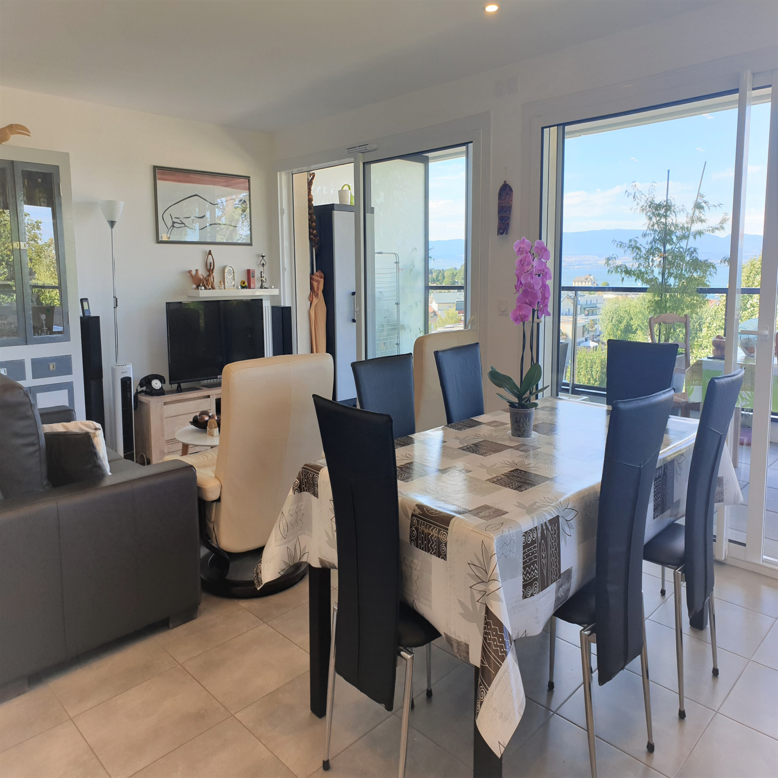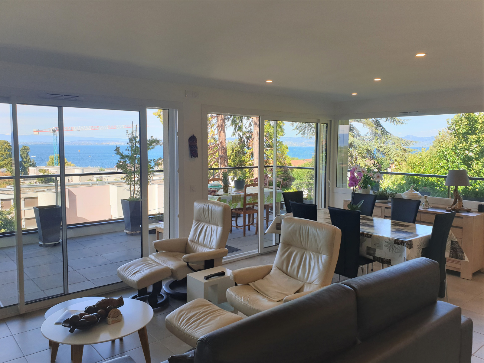 Dans un bel ensemble immobilier neuf de standing dont la construction date de 2017 respectant les normes d'accessibilité et ayant reçu le label BBC garantissant une forte isolation thermique, s'assortit d'une consommation d'énergie réduite. Dans un cadre idéal, cet appartement se constitue d'une belle entrée avec placard, une cuisine équipée ouverte sur le séjour et le salon ouvrant sur une terrasse de 24 m² sans vis à vis avec une vue imprenable sur le lac. L'espace nuit offre, une chambre avec placard / dressing, une salle de bains, wc avec lave main, une suite parentale avec sa salle de douche et wc privatif. Une cave, une place de stationnement privée et un garage avec porte motorisée viennent compléter ce bien. Faibles charges. Matériaux et construction de qualité. Copropriété de 18 lots principaux. Rare à la vente ! Annonce rédigée par un agent commercial : CPI 7401 2018 000 026 086 RSC : 433 799 400