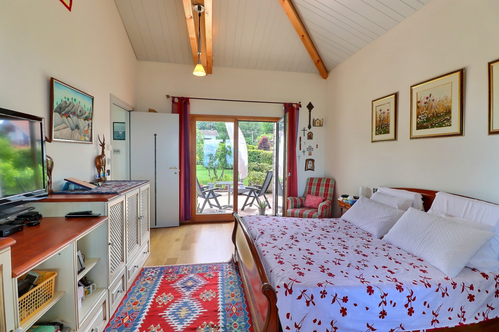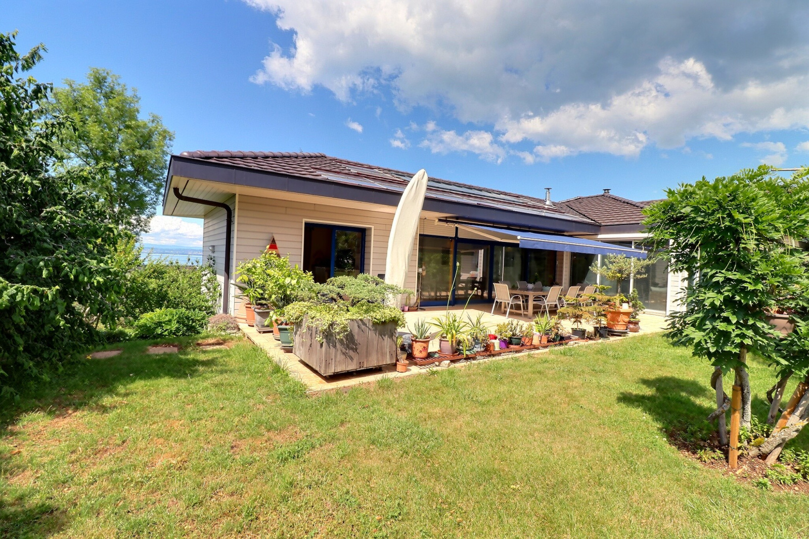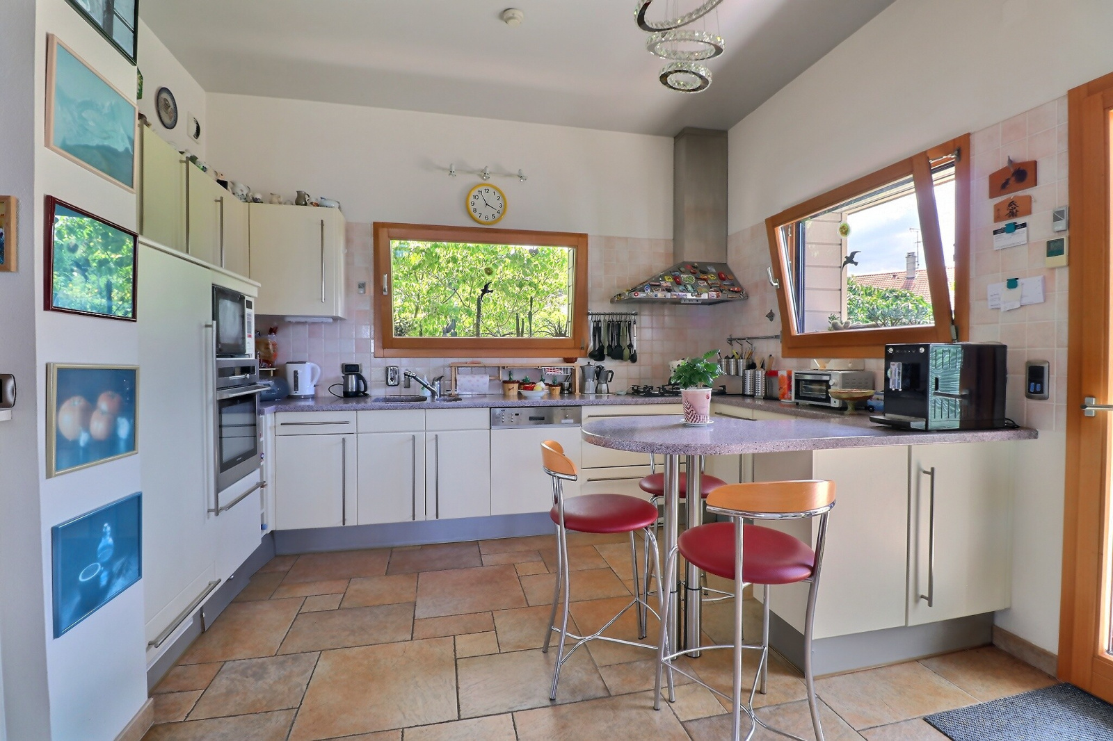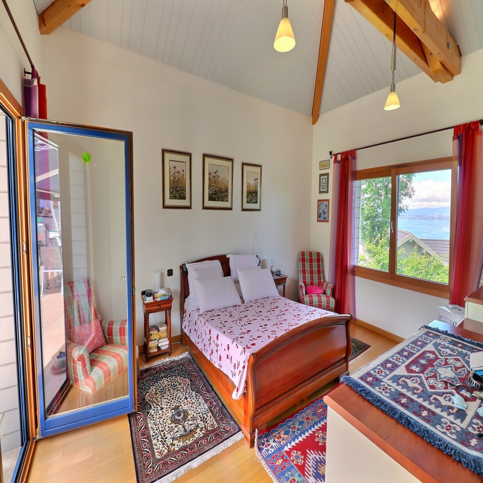 En exclusivité : Villa d'architecte de 250 m² habitables, plus un appartement indépendant de 63 m² édifié sur 1743 m² de terrain paysagé.Nichée dans un quartier résidentiel proche du Golf Club d'Evian Resort et des commerces. La construction de 2005 offre des prestations de qualités. L’isolation thermique haute performance et l’installation de panneaux solaires rendent la maison écologique et économique. Au rez-de-chaussée, vous trouverez une entrée avec un vestiaire et des toilettes visiteurs, une cuisine équipée ouverte sur le vaste séjour, le salon avec sa cheminée et le jardin d’hiver soit environ 70 m² d’espace de vie avec de grandes baies vitrées offrant une vue imprenable sur le lac Léman.Un couloir vitré longeant la terrasse dessert l’espace nuit : deux chambres, un dressing, une salle de bain : douche, jacuzzi et wc.Le rez-de-chaussée inférieur offre un appartement de type 2 entièrement indépendant : cuisine équipée, salon / séjour, chambre, salle de douche et hammam, wc, cave et terrasse orientée vers le lac.Un double garage carrelé, un Carnotzet, une cave à vin, un local technique et une buanderie. À l’extérieur, un abri voiture, un jardin paysagé, une terrasse côté « Sud » abritée d’un Store banne.Le tout est accessible aux personnes à mobilité réduite.Les équipements offrent la possibilité d’une domotique à distance, centralisation des volets, porte de garage et portail motorisés, avec détecteurs de présence et pour votre sécurité une alarme veillera sur votre propriété en votre absence.