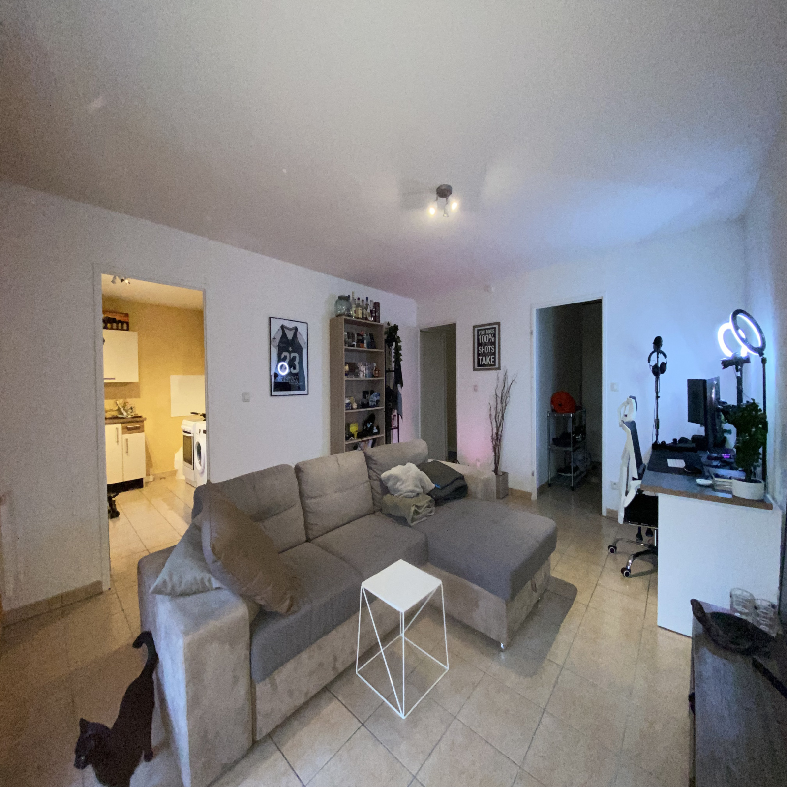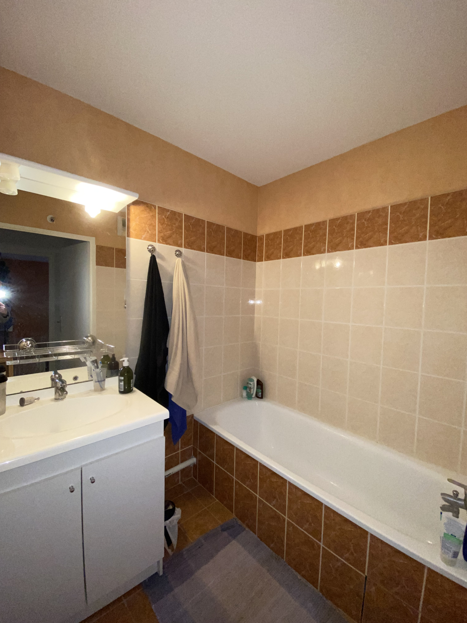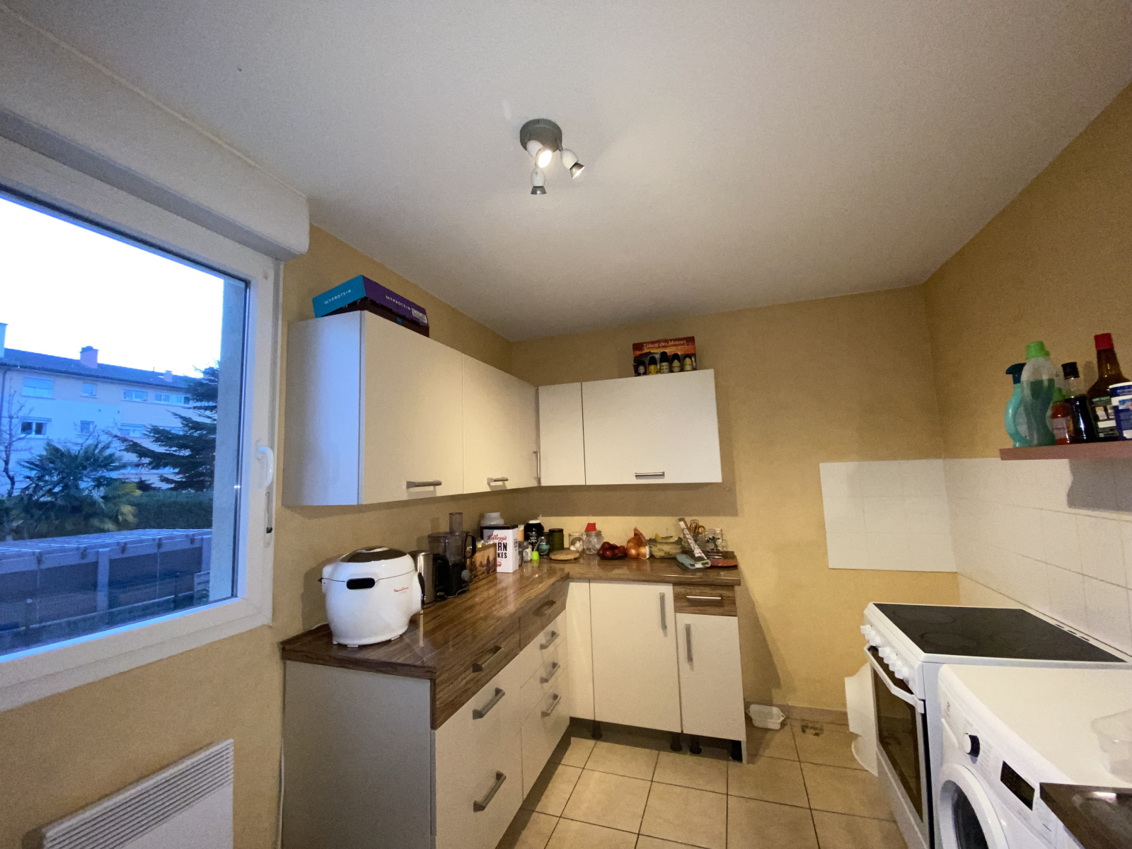 Appartement de type 3 de 64 m² avec balcon exposé Ouest, hall d'entrée avec placard, lumineuse pièce de vie avec cuisine, deux chambres avec placards, une salle de bains et des toilettes séparés.