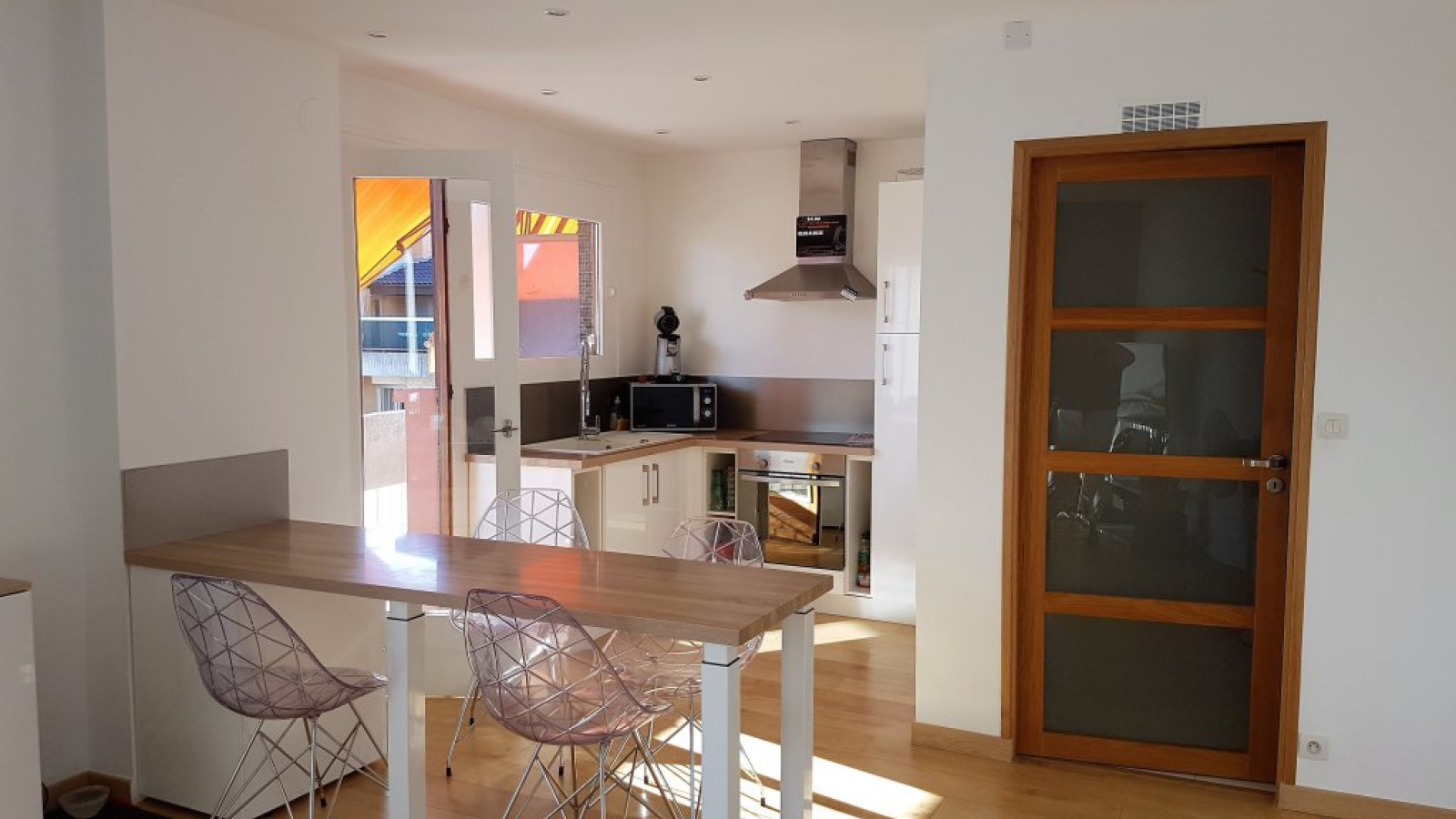 Centre-ville, magnifique appartement T2 entièrement rénové au 5 -ème et dernier étage avec ascenseur. Belles prestations et vue dégagée... coup de cœur assuré ! Cuisine équipée ouverte sur la pièce de vie, chambre, salle de douche à l'Italienne. Un grand balcon filant. Une cave en sous-sol et parking résidence. Que les valises à poser ! Faibles charges comprenant : eau chaude, froide, chauffage au gaz collectif... Copropriété de 27 lots.