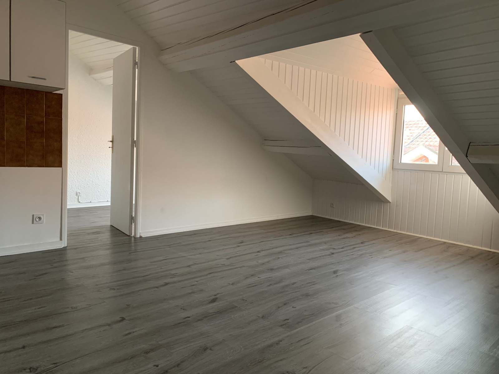Thonon, au 4ème et dernier étage, appartement de type 1 bis sous combles. Il se compose d'une pièce principale et d'un coin kitchenette, une chambre et une salle d'eau avec toilettes séparé.