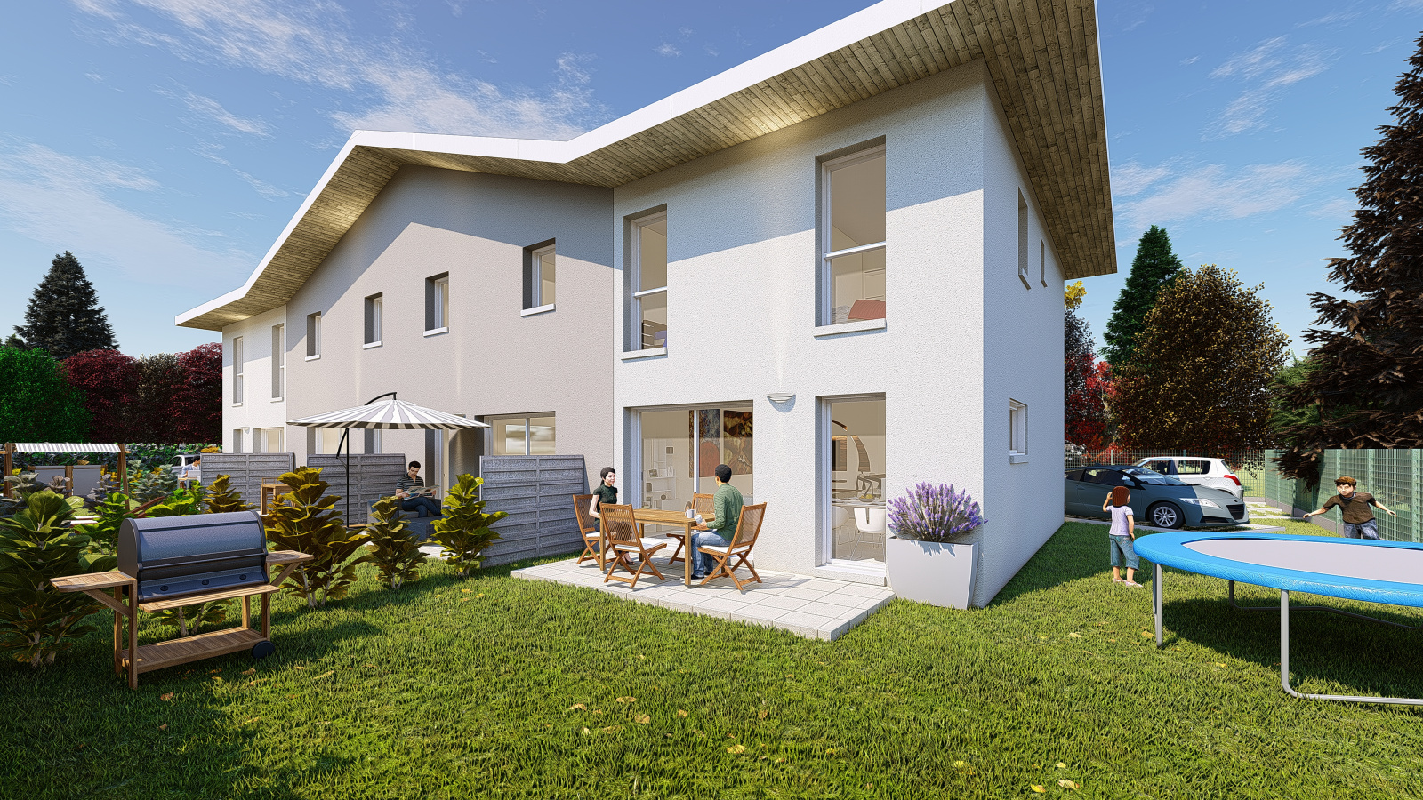 Sur la commune d'Anthy sur Léman, A partir de 290 000 € Villa mitoyenne de type 4 de 82 m², garage, 2 places de stationnement, terrain privatif.