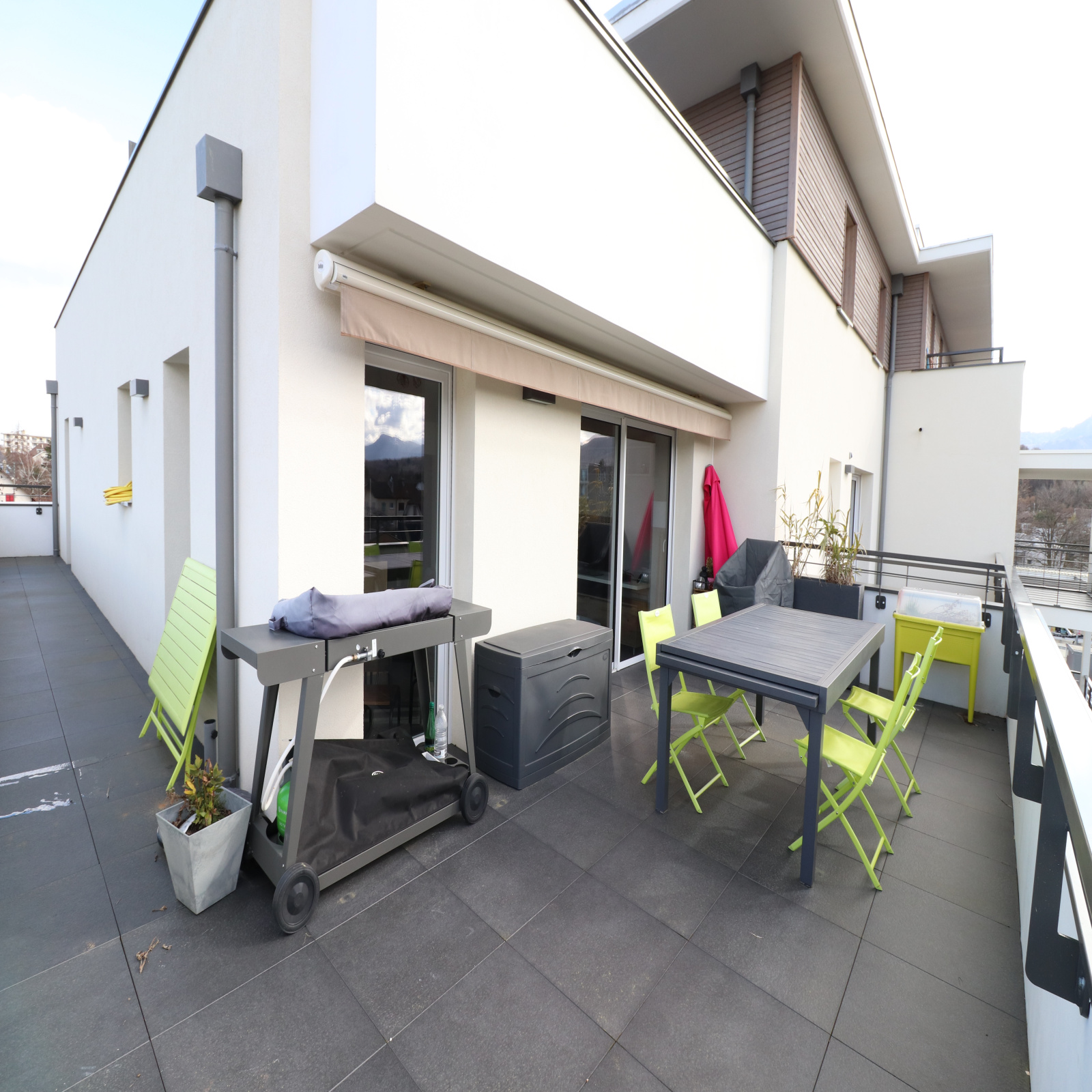 Terrasse de 39m² exposée Sud Ouest et offrant une vue sur le Lac.