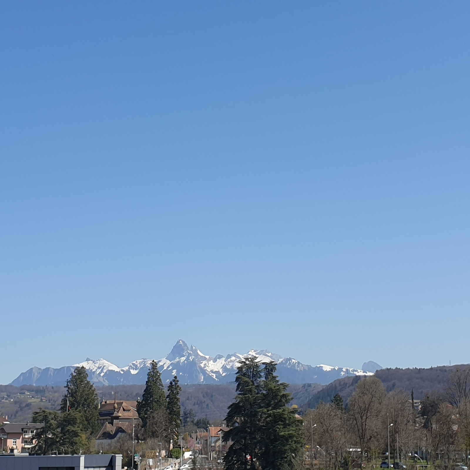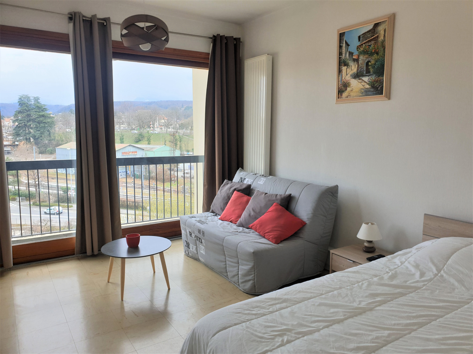 Appartement de 1 pièce entièrement rénové avec goût situé au 5e étage avec une vue dégagée sur la montagne (Dent d’Oche). A quelques pas de la gare SNCF, du centre-ville et des thermes.