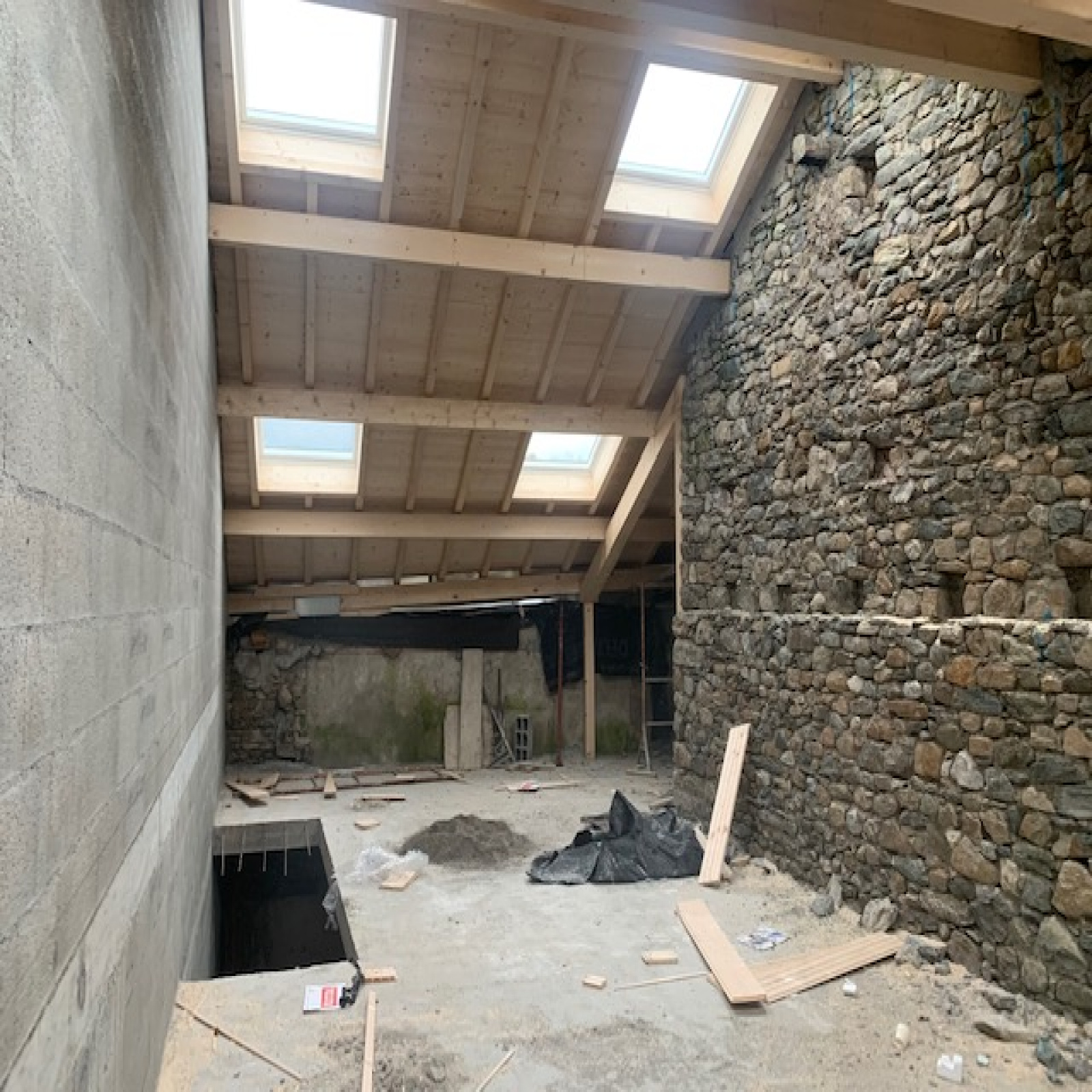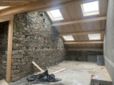 La maison est hors d'eau, en triplex, toiture, Vélux neufs, dalles intermédiaires en béton. Travaux en cours: facades- menuiseries et escalier béton.
