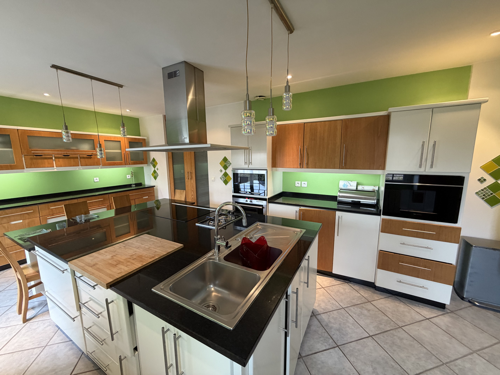 Située dans une impasse, dans un secteur résidentiel au calme, Découvrez cette maison individuelle de 180 m² édifiée sur 1 322 m² de terrain clos et arboré. Constituée de 2 niveaux, vous retrouvez au rez un hall d'entrée avec un dressing, une spacieuse cuisine dinatoire équipée, une pièce de vie avec une cheminée, un wc, une salle de douche et 3 chambres. A l'étage, une mezzanine, une salle de bains avec douche et baignoire et deux chambres. La maison a été isolée par l'extérieur ce qui permet une économie d'énergie importante. Des panneaux photovoltaiques assurent une partie de la production d'eau chaude. Belle maison familiale à visiter.