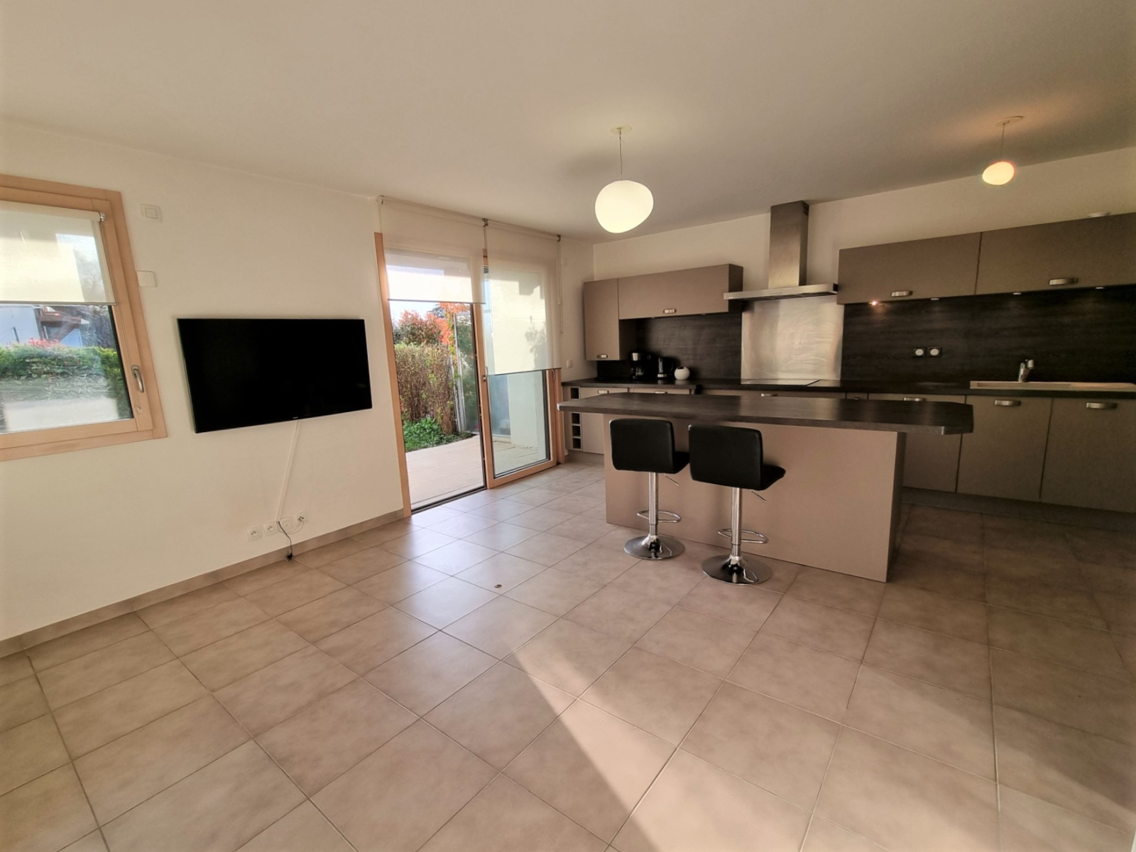 Dans une résidence de standing de 2014, magnifique appartement de type 3 en rez de jardin orienté "sud / ouest. Il vous offre de belles prestations. Une entrée avec placard aménagé, une salle de bains, un wc indépendant, deux chambres avec placard dont une avec sa terrasse et une pièce de vie très lumineuse où vous trouverez une grande cuisine équipée qui s'ouvre sur la terrasse et un joli jardin baigné de soleil en période estivale. Une cave en sous-sol et une place de parking privative complètent ce bien. Le chauffage et l'eau sont compris dans les charges. Possibilité d'acquérir un garage en sous-sol pour 17 000€... Normes RT 2012, PMR, volets roulants motorisés, visiophone... Ne tardez pas !