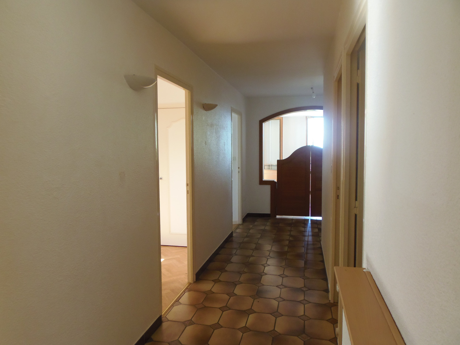 1 hall d'entrée, 1 cuisine séparée et amenagée, 2 chambres avec placards et portes fenêtres, 1 séjour de 23m² avec cheminée et balcon, 1 salle de bain, 1 wc séparé, 1 cave.