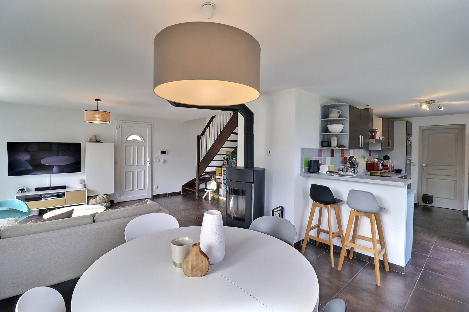 L'agence Home et Patrimoine vous présente cette maison familiale de 109 m² habitables, située sur un secteur calme et recherché de la commune de Margencel à quelques minutes seulement de toutes les commodités. Composée au rez de chaussée, une pièce de vie chaleureuse avec un poêle à bois, une cuisine moderne et équipée, un wc visiteur, une suite parentale avec sa salle d'eau privative. A l’étage : trois chambres spacieuses dont une avec un grand espace dressing et une salle de bains.