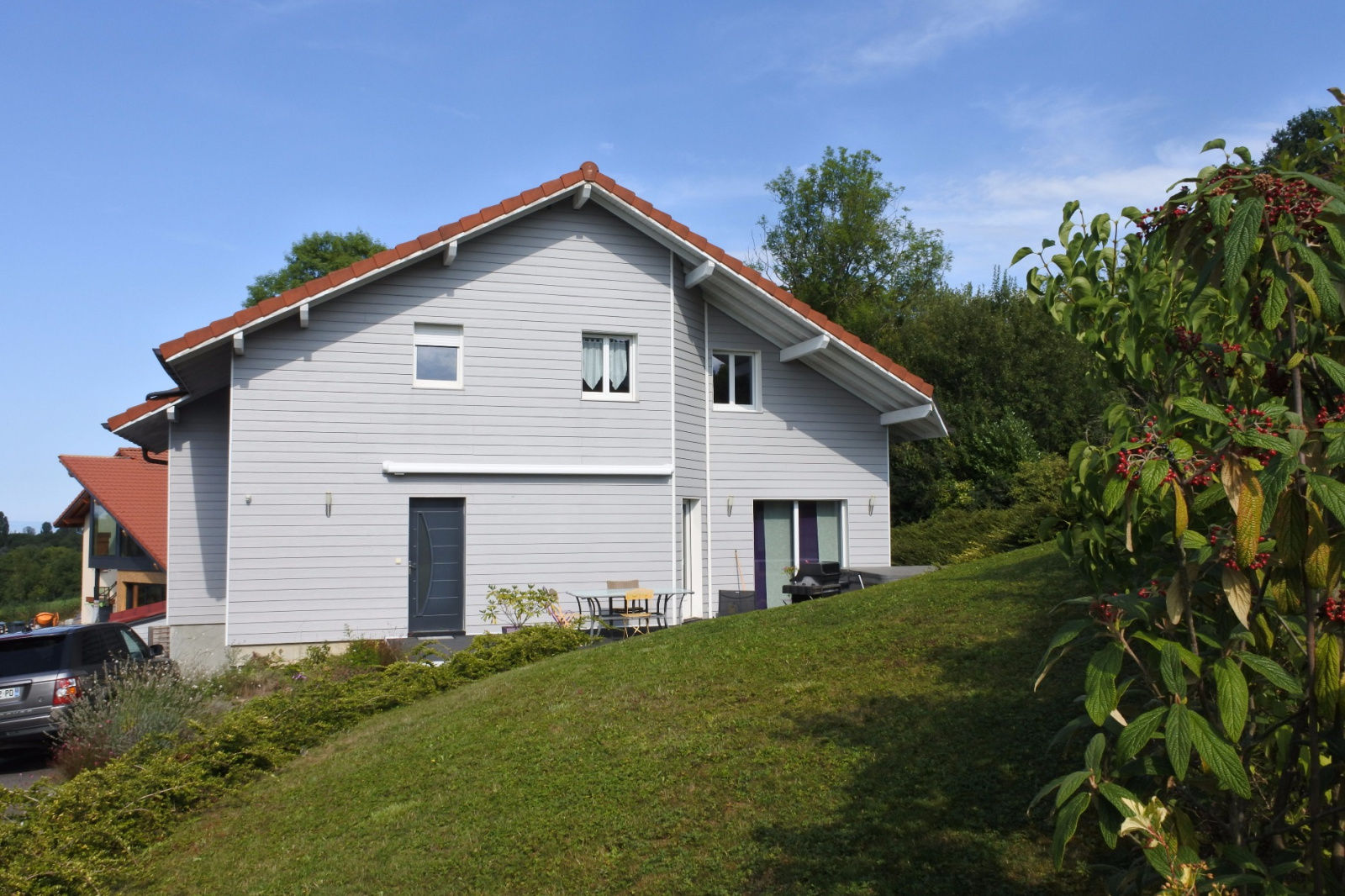 Maison en ossature bois sur sous-sol total en béton armé, 2 garages, 1 cave. Au rez: Un hall d'entrée avec placard, une cuisine équipée haut de gamme ouverte sur un séjour et un salon, un cellier/buanderie, un wc avec lave main, une suite parentale avec salle de douche et dressing. A l'étage: Une mezzanine, 4 chambres, une salle de bains + douche + double vasque, un wc. A l'extérieur: Une terrasse de 40 m² en composite, 3 places de stationnement, le tout sur une parcelle de 800 m².