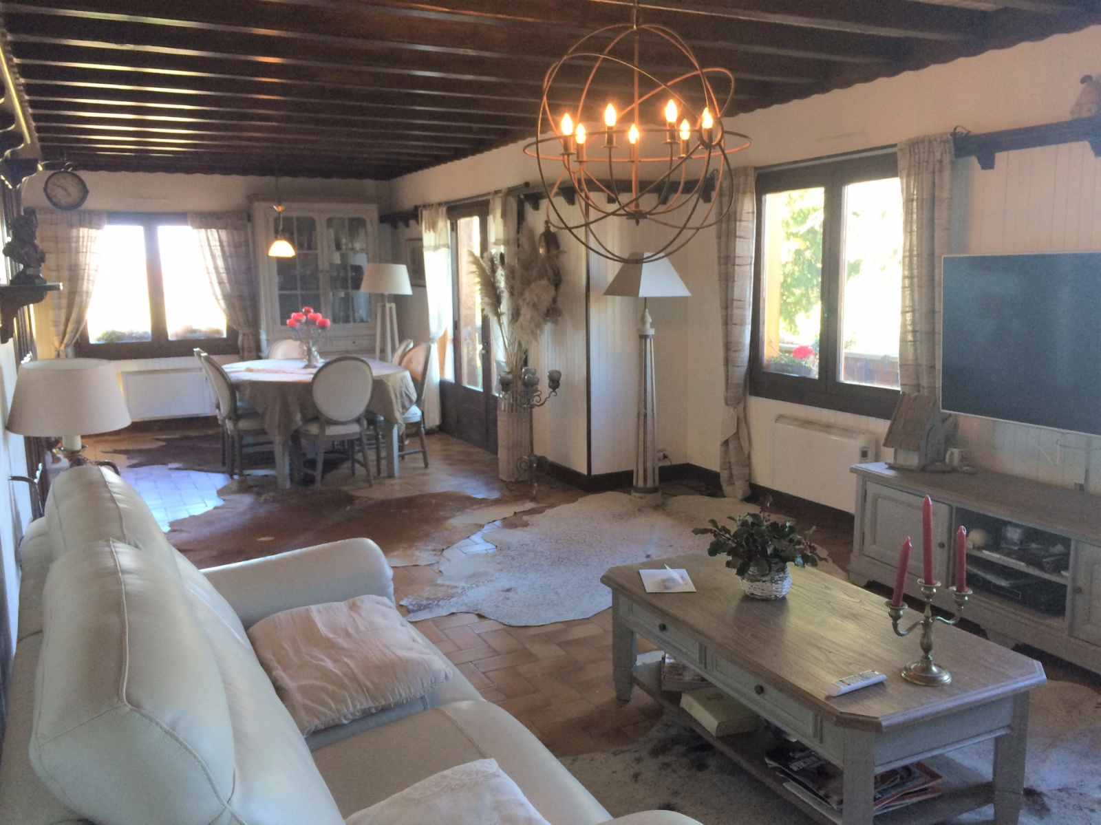 Il offre une vaste pièce à vivre, une cuisine équipée, 3 chambres, 1 bureau, 2 salles de bains ainsi qu'un garage, une buanderie et une cave.