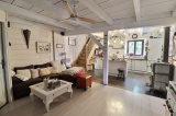 Au 1er étage, en duplex, la maison est composée d'une entrée s'ouvrant sur la pièce de vie avec un poêle à bois, d'une cuisine équipée, d'une chambre et de WC. À l'étage, l'espace nuit comprend 2 chambres, une salle de bains et des WC. À l'extérieur, une spacieuse terrasse couverte de plus de 70 m² vous accueille pour de belles soirées.