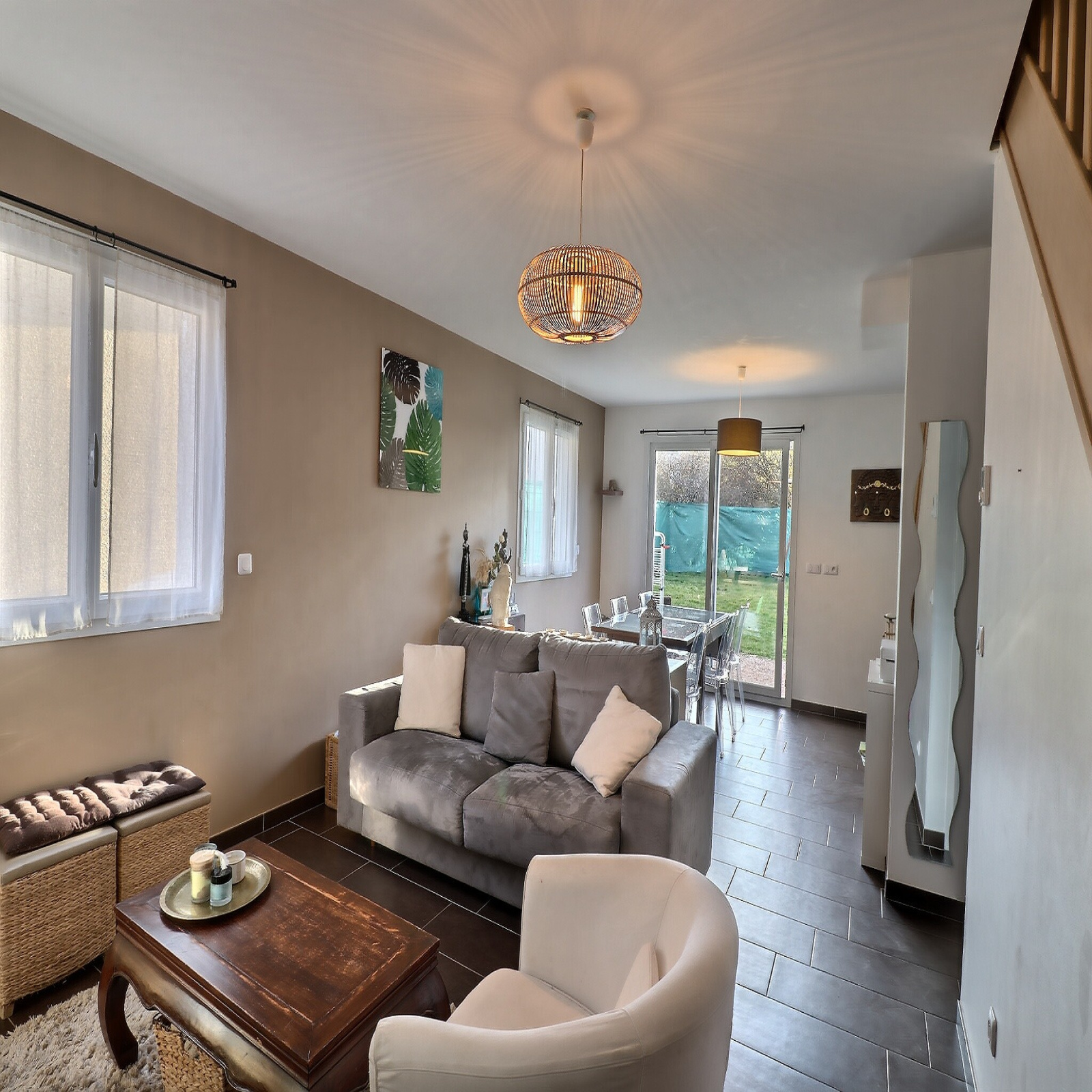 Elle se compose de 3 chambres à l'étage, une salle de bains avec bain et douche, 2 wc. Une jolie pièce de vie ouverte sur la cuisine équipée.