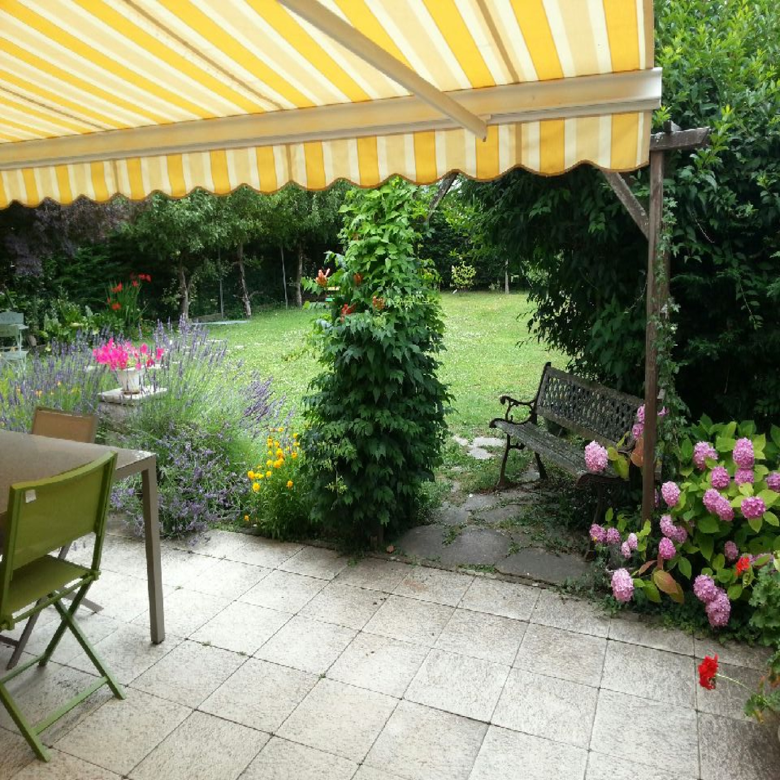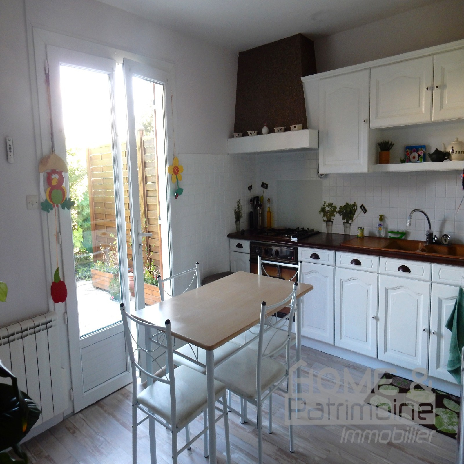 l'ensemble sur une parcelle cloturée et joliment arborée de 480 m² comprenant également un auvent en bois accolé ainsi qu'une terrasse dallée d'environ 40 m², 2 places de parking extérieur.